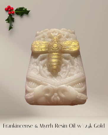 Bathe yourself in health, luxury and history with our pure frankincense & myrrh resin, 24k gold bath bars.