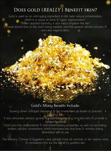 One of the ingredients in our Golden Ageless skin rescue is 24k Gold which brightens skin and aides in reducing fine lines.